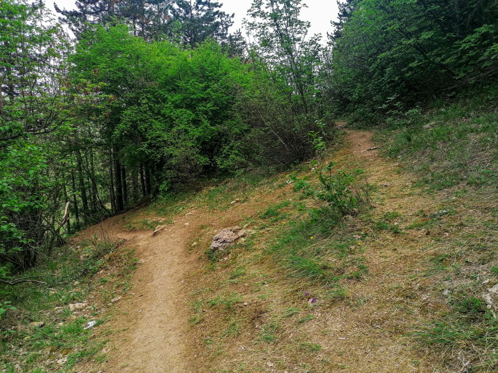 Малко след като завиете вляво се появява още едно разклонение. Продължавате по пътеката, която води надолу. Там е и може би най-трудната част от иначе лекия преход, тъй като е доста стръмно, но за сметка на това е доста кратък участък.