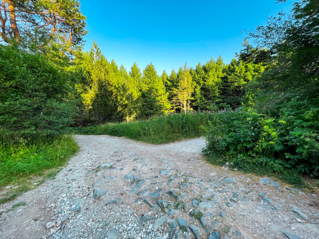 Тук хващаме главния път за кратко и вървим на равно, а в далечината вече виждаме и крайната ни цел. След известно време стигаме до разклонение, на което трябва да поемем надясно. Може да се ориентирате по коловата маркировка, стигнете ли до номер 40, трябва да хванете пътеката вдясно и да оставите главния път встрани.