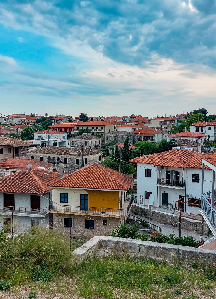 Селото е и чудесен пример за традиционна гръцка архитектура. На площада му се намира църквата „Свети Димитър“, трикорабна куполна базилика (единствената в Халкидики), в която иконостасът и прозорците са украсени с каменни релефи. Известен за туристите е и Фолклорният музей, където са изложени художествени творби, керамика и артефакти от местните селяни. За мен беше изключително интересно да наблюдавам всички кашпи със засадени цветя, разположени по улиците – всяка от тях е произведение на изкуството.