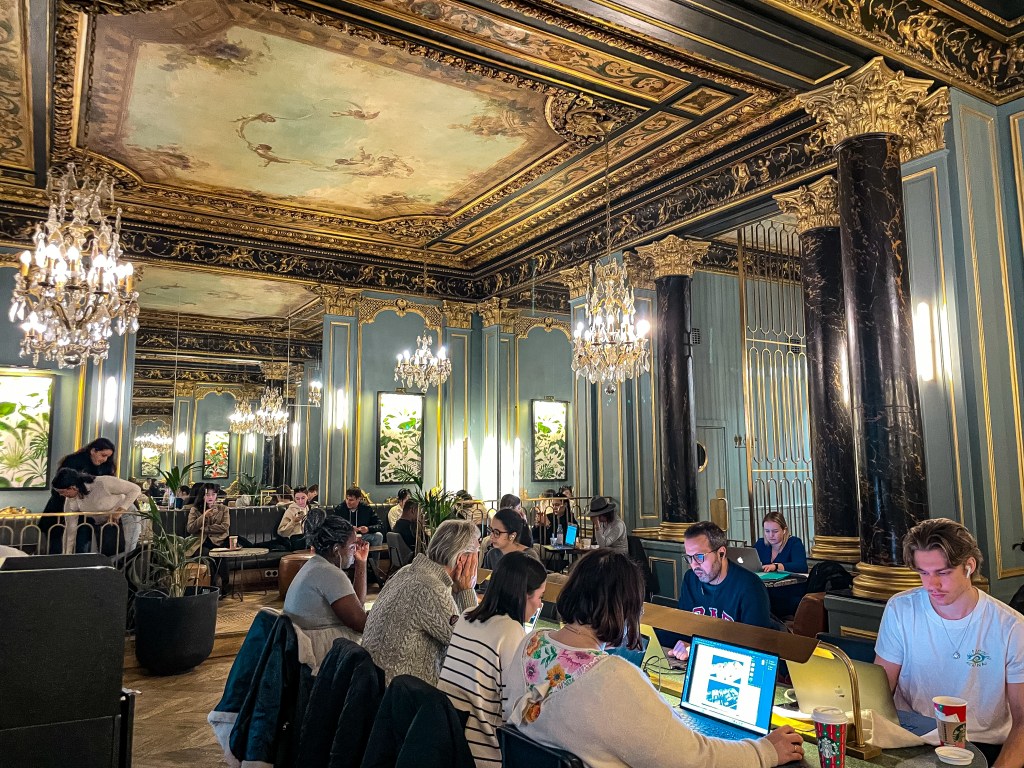 Е, ако не бяхме отишли до Hippopotamus за обяд, нямаше да попаднем на най-красивия Starbucks в Париж, който се намира съвсем близо до него. Интериорът на кафенето е наистина удивителен и е изключително приятно място за следобедно кафе.