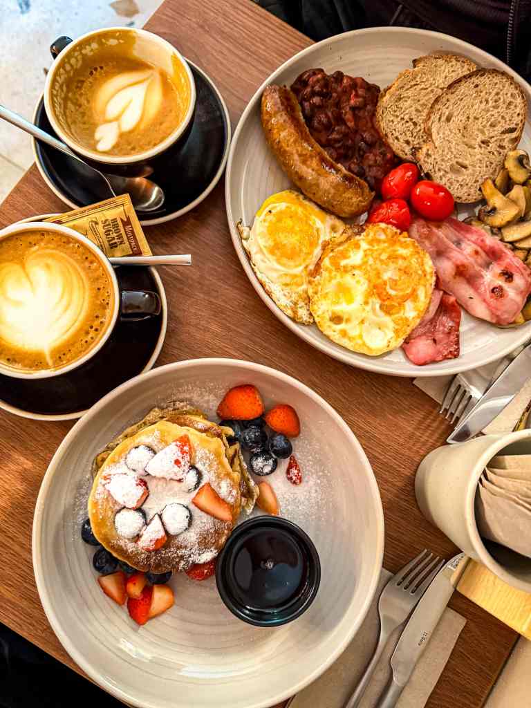 Менюто ми направи страхотно впечатление, като ние опитахме английска закуска и американски палачинки – и двете бяха страшно вкусни. Имат овесени каши и смути купички, различни вариации на яйца бенедикт и омлети, много интересни сандвичи и фокачи. А това, което си оставихме за следващото посещение, бяха солените палачинки. Определено си заслужава да ги пробвате, ако сте фенове на соления брънч.