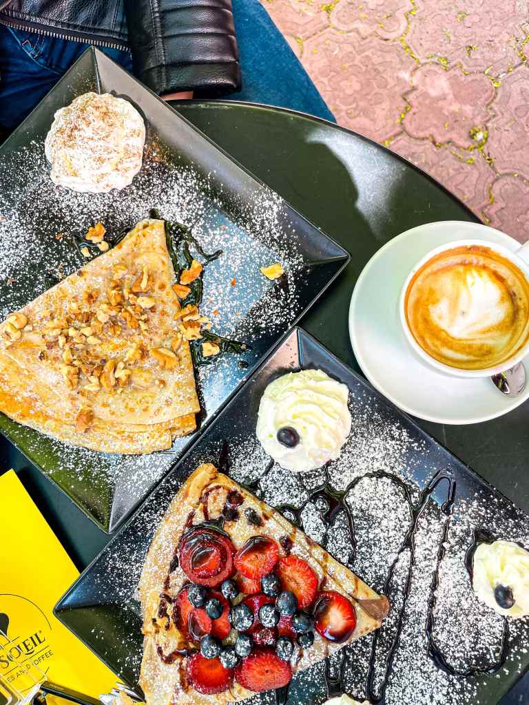 Le Soleil e брънч предложение за любителите на палачинките. Приготвени по специална френска рецепта, традиционните crêpes ни пренасят директно в Париж само с една хапка. А атмосферата на кафенето допълва усещането с типичния парижански вайб – малки масички, ароматно кафе и градската улица, заглушена от листата на дърветата.