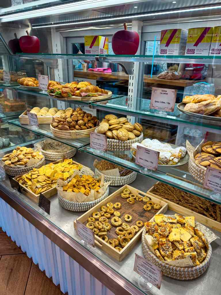 За тези, които бързат или искат да хапнат на крак, има и пресни печива – солени и сладки.